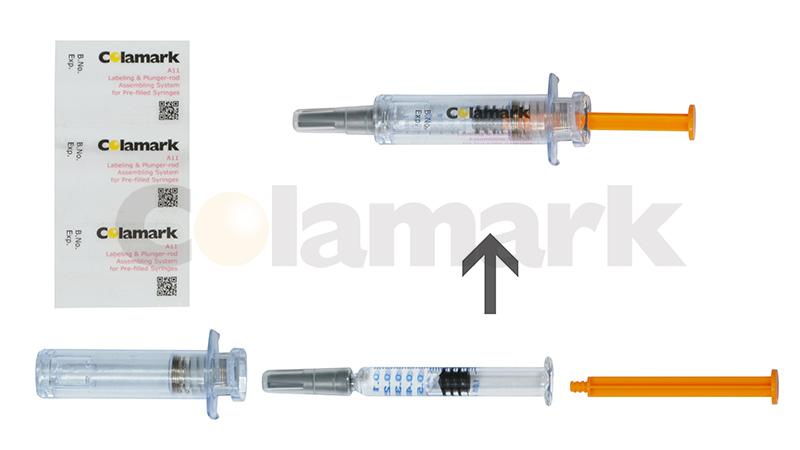 預(yù)充針管自動脫巢→擰桿貼標(biāo)→保護(hù)套(安全裝置)自動安裝