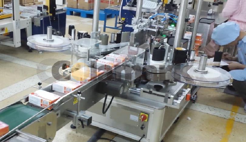兩款設備來實現(xiàn)相關的需求,由于貼標入托的速度太快,而客戶采用的是人工裝盒,以至于出現(xiàn)現(xiàn)有裝盒工人忙不過來的情況,以下是生產現(xiàn)場照片與視頻。