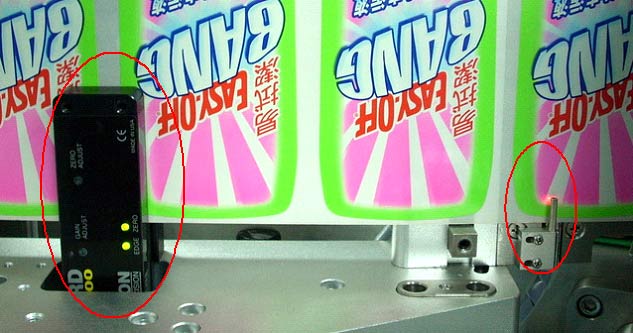- 標簽電眼:標簽電眼安裝在剝離板旁,用以檢測標簽間隙。在標簽紙前進時,檢測到標簽間隙后,立即將觸發(fā)信號傳到控制系統(tǒng),控制系統(tǒng)在標簽繼續(xù)前進 設(shè)置的位移長度后停止標簽紙。 有兩種類型的標簽電眼:? 1、透明標簽電眼(左):檢測透明標簽。2、?普通標簽電眼(右):檢測不透明標簽。