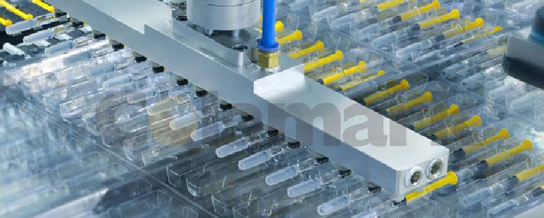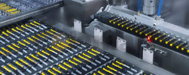 預(yù)充針管擰桿貼標(biāo)→泡罩包裝→自動裝盒溯源生產(chǎn)線-達(dá)爾嘉