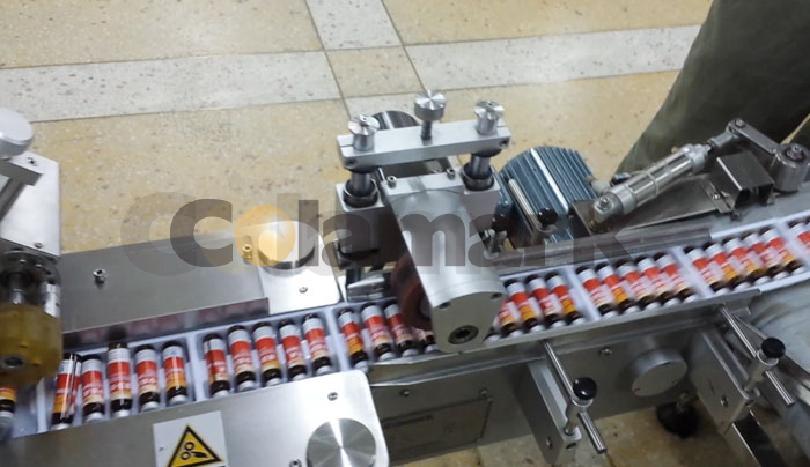 臥式圓瓶貼標(biāo)機(jī)+臥式入托機(jī)+對(duì)角封口貼標(biāo)機(jī)應(yīng)用