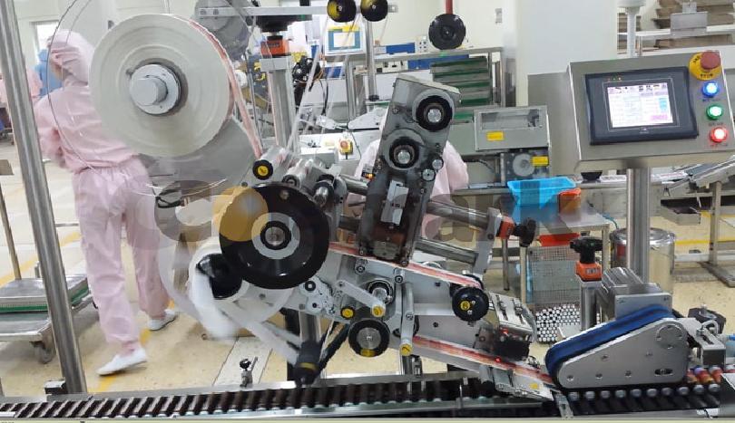 6個(gè)貼標(biāo)頭的落地式貼標(biāo)機(jī)應(yīng)用